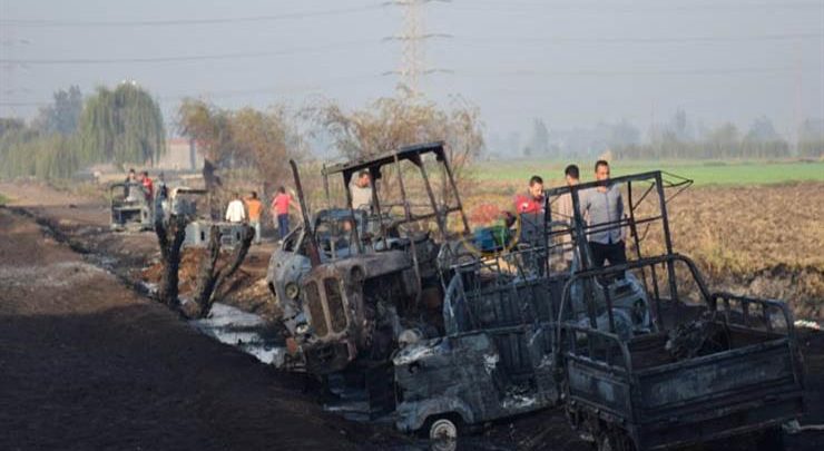 وتبين وجود كلبس “محبس” مُثبت بذلك الأنبوب مع وجود تسريب كبير بالمنطقة المحيطة بالأنبوب واشتعال النيران بكميات الوقود المتسربة حال قيام المختصين بشركة أنابيب البترول في إصلاحه عقب غلق المحابس الرئيسية للخط والسيطرة على الحريق وإخماده ونتج عنه وفاة 8 أشخاص وإصابة 10 آخرين.