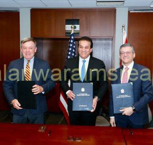 أولاً: توقيع مذكرة تفاهم بين وزارة التعليم العالي وجامعة ولاية أريزونا ومؤسسة سنتانا لإنشاء فرع للجامعة بجامعة الجلالة الأهلية:
