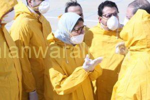 وأوضح الدكتور خالد مجاهد، مستشار وزيرة الصحة والسكان لشئون الإعلام والمتحدث الرسمي، أن الوزيرة تتابع خطة المحاكاة التى تجري الأن بمطار العالمين لاستقبال الوافدين بما فيها كافة الاجراءات الوقائية المقرر اتخاذها سواء للوافدين أو أطقم الطائرة أو ظباط “الجوازات”، وإطمئنت على وجود كافة المستلزمات الطبية وفقاً لاشتراطات منظمة الصحة العالمية، لوقاية الطاقم الطبى والادارى وظباط الداخلية، كما راجعت خطة نقل الوافدين بداية من مهبط الطائرة حتى الوصول الي مقر اقامتهم بالحجر الصحي، وراجعت تمركز سيارات الاسعاف ذاتيه التعقيم المنشرة بمهبط المطار.