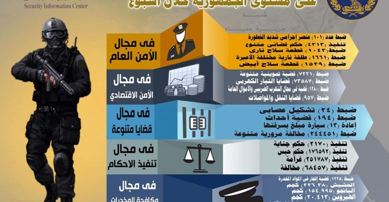 جهود أجهزة وزارة الداخلية على مستوى الجمهورية خلال أسبوع