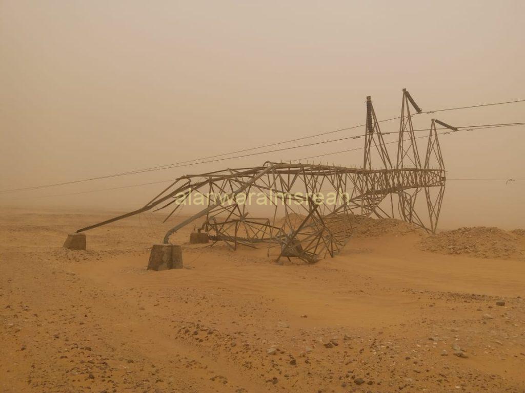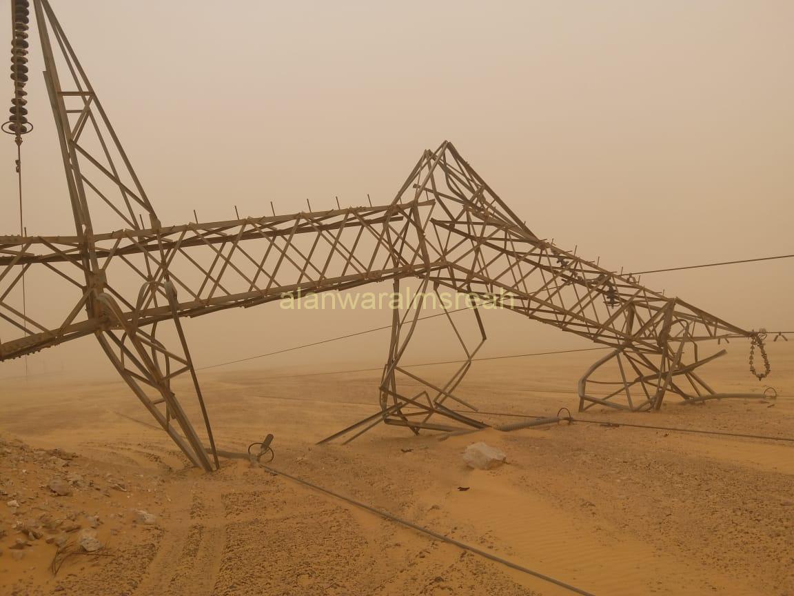 نتيجة سوء الأحوال الجوية وشدة الرياح أدى ذلك إلى سقوط حوالى32 عمود كهربى جهد متوسط فى إطار محافظة الوادى الجديد مما أدى إلى إنقطاع التغذية الكهربية فى مناطق مختلفة داخل إطار المحافظة ( الداخلة – الخارجة – بلاط – باريس – شرق العوينات) وعلى الفور تم الدفع بالمولدات الاحتياطية لتغذية المنشآت الحيوية ومحطات المياه والصرف الصحى والمستشفيات والمخابز ، وجارى العمل على سرعة إصلاح هذه الابراج طبقاً لإمكانية تحرك فرق الطوارئ والصيانة وذلك نظراً لشدة سرعة الرياح المحملة بالأتربة والرمال التى وصلت الى 56 كيلومتر في الساعة مما يؤدى إلى إعاقة الرؤية وعلى الرغم من ذلك فإن فرق الصيانة والطوارئ متواجدة لإعادة التغذية على المغذيات البديلة في أسرع وقت ممكن.