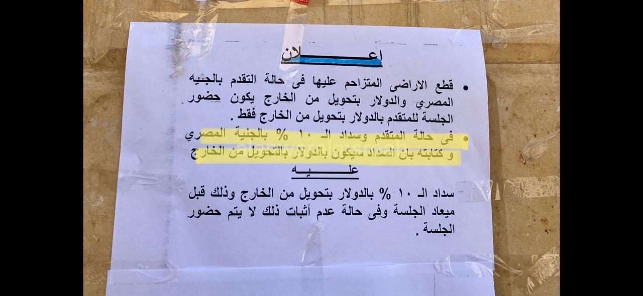 – اليه التخصيص كالتالي ان الارض بالجنيه المصري .و يتم دفع مقدم حجز ١٠٪ بالجنيه المصري وتكون الافضليه بسداد كامل ثمن الارض بالدولار . بناء علي الطلب والعرض المالي المقدمين من الشركه .