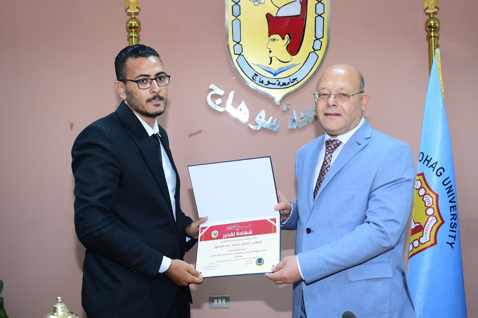 رئيس جامعة سوهاج يكرم خريج كلية الهندسة الشهير ببائع التين الشوكي ويوجه رساله للطلاب من الكفاح يُولد النجاح