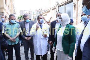 وأضاف “مجاهد” أن الوزيرة تفقدت أقسام المستشفى المختلفة، وتابعت دورة المريض داخل المستشفى بداية من التشخيص وإجراء التحاليل والفحوصات اللازمة، وتطبيق بروتوكولات العلاج المحدثة، وشددت مجددًا على اعتماد نتائج الفحص الإكلينيكي، وأشعة الصدر، والتحاليل المعملية، كوسائل لتشخيص الحالات المشتبه في إصابتها بالفيروس وبدء تلقي العلاج فورًا لحين ظهور نتيجة المسحة (pcr)، وفقًا لما تم تحديثه ببروتوكول التشخيص، كما شددت على تطبيق كافة معايير مكافحة العدوى واتخاذ كافة الإجراءات الوقائية.