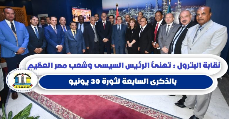 قدم المكتب التنفيذي للنقابة العامة ، برئاسة محمد جبران رئيس النقابة العامة للعاملين بالبترول ونائب رئيس الاتحاد العام لنقابات عمال مصر التهنئة للشعب المصري، والرئيس عبد الفتاح السيسي، بمناسبة الذكرى السابعة لثورة 30 يونيو المجيدة، والتي جاءت من أجل الحفاظ على الهوية المصرية، ووحدة الأرض والشعب، ورسمت ألوان التحدي وتحمل المصاعب.