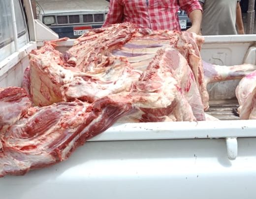 كما تم ضبط ٨٠ كجم من لحوم بقري مذبوحة خارج المجازر بأحد محلات الجزارة وقد تم تحرير المحاضر اللازمة للعرض على النيابة المختصة