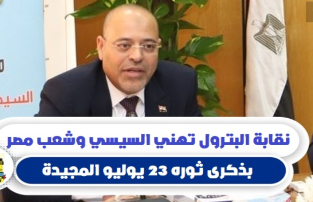 ودعا رئيس نقابة البترول الشعب المصري إلى استلهام روح ثورة 23 يوليو في هذا الوقت الذي تمر فيه مصرنا الغالية بتحديات كبيرة تستوجب تكاتف كافة أبنائها، وتتطلب العمل بإخلاص وتفانٍ من أجل رفعة مصر وتقدمها، سائلًا المولى عز وجل أن يحفظ مصر والمصريين، وأن يرد عنها كيد الكائدين، وحقد الحاقدين وأن يديم عليها نعمةَ الأمن والأمان.