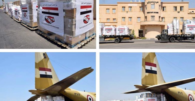 بتوجيهات من الرئيس / عبد الفتاح السيسى .. طائرتان عسكريتان محملتان بأطنان من المساعدات الطبية والدوائية والغذائية تصل لبنان فى عاشر رحلات الجسر الجوى …