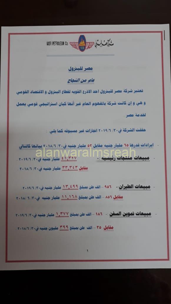نتائج أعمال متميزة لشركه مصر للبترول خلال عام 2018/2019