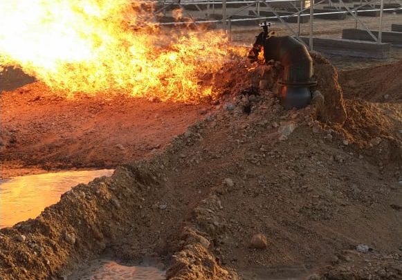 النيران تتدفق من باطن الارض. هل غاز اوخلافه وزاره البترول الامل في كشف الحقيقه