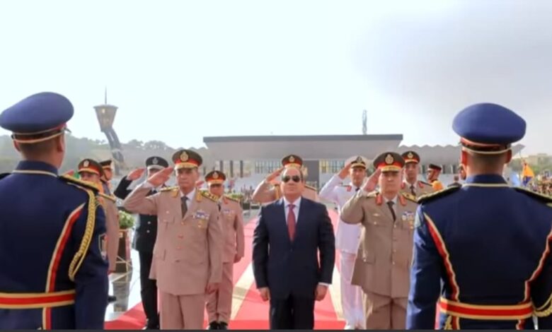 الرئيس عبدالفتاح السيسي يضع أكاليل الزهور على قبر الجندي المجهول والزعيمين أنور السادات وجمال عبدالناصر