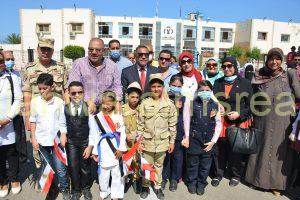 حيث وجه الطلاب والطلائع التهنئة للواء خالد شعيب محافظ مطروح بمناسبة الاحتفال بذكرى انتصارات السادس من اكتوبر المجيدة ، كما أنشد كورال مديرية التربية والتعليم عدد من الأغاني الوطنية والحماسية و ألقت الطالبة مريم حسن قصيدة وطنية عن انتصارات أكتوبر