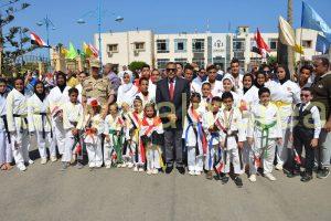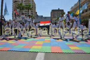 و استعرض طلائع الشباب والرياضة مهاراتهم فى عد من الالعاب كالكاراتيه والجمباز واستعراضات للياقة البدنية