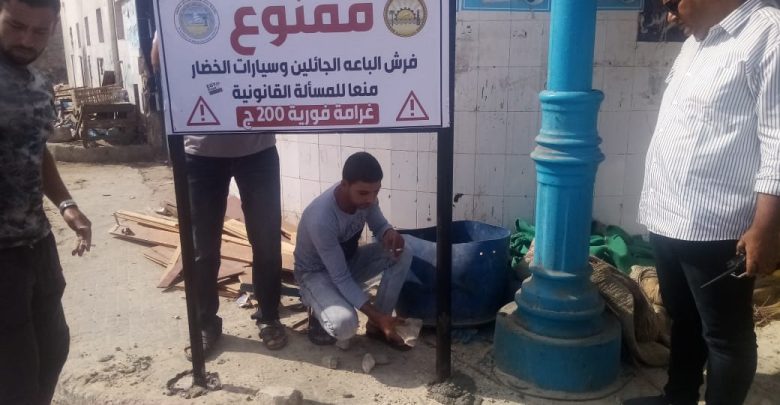 حملات لازالة اشغالات الطريق وضع لافتات بتوقيع غرامات للمخالفين بمداخل سوق مطروح الحضاري