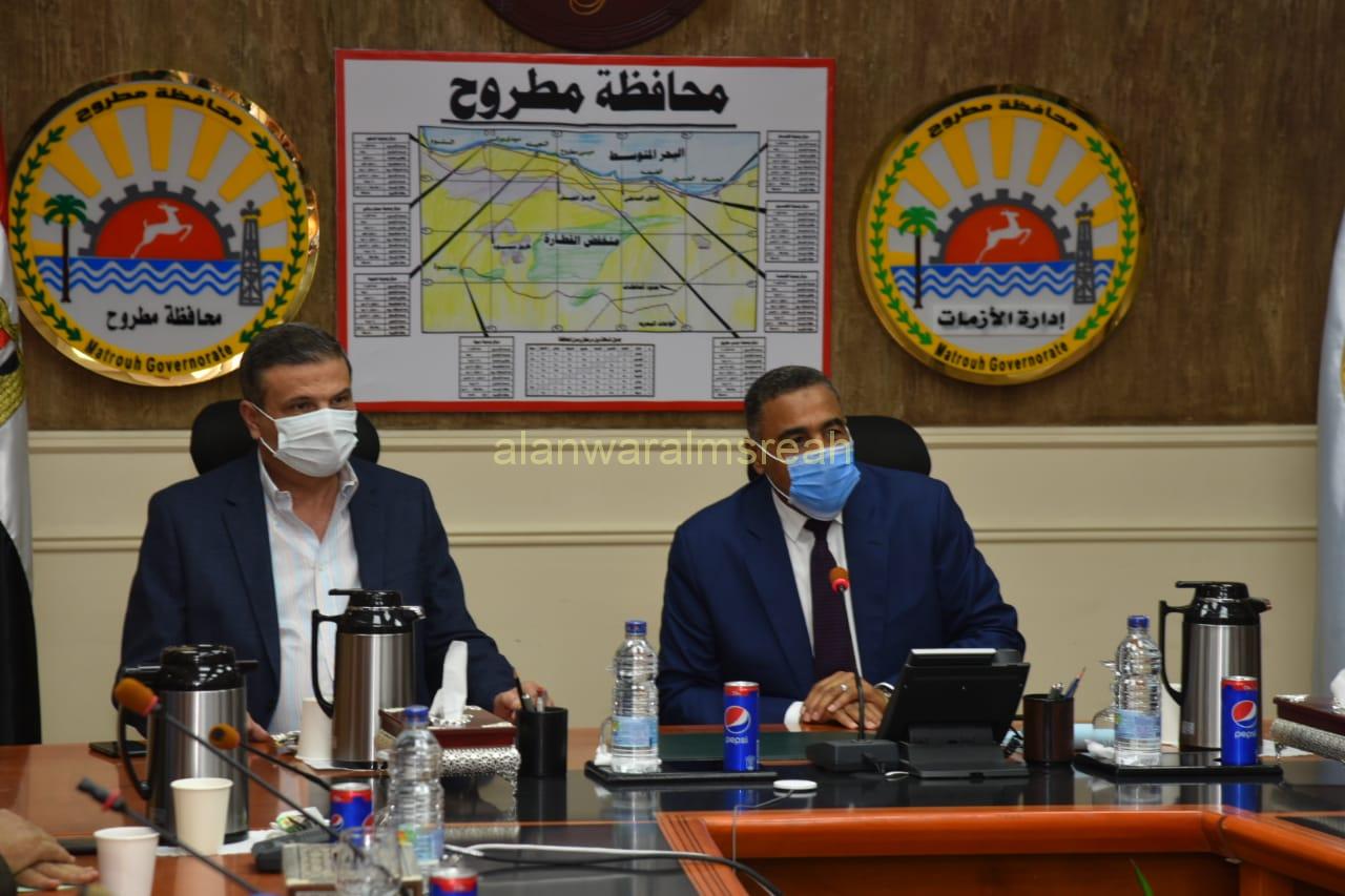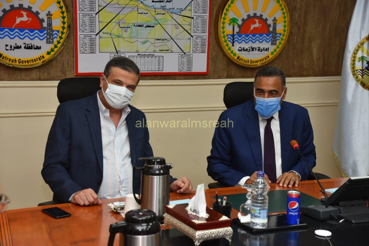 حيث عقد اجتماع لإستعراض الفرص و الامكانيات التى يمكن من خلالها تعاون البنك الزراعى المصرى مع جهود التنمية بالمحافظة بما يتواكب مع اهتمام الدولة بتنمية مطروح والساحل الشمالى ، ودور البنك فى تحقيق المشاركة المجتمعية الفاعلة خاصة توفير مزيد من فرص العمل لأبناء مطروح، وفتح أفرع جديدة تتناسب مع مساحة وعدد سكان المحافظة خاصة بسيوة بالإضافة إلى تطوير فرعى مرسى مطروح والحمام ، ودعم المشروعات المتوسطة والصغيرة بما يلائم طبيعة المحافظة ومراعاة الطبيعة الاجتماعية و الاقتصادية و البيئية خاصة فى المجالات الزراعية وتنمية الثروة الحيوانية ، كتقديم قروض ميسرة لمشروعات الصناعات الزراعية كتصنيع الالبان وغيرها ، وتربية الماعز والاغنام ، او إنشاء الآبار ، وكذلك تنمية الثروة الداجنة وتحديث انظمتها من مفتوحة الى مغلقة ، ومساعدة رجال الاعمال فى اى نشاط صناعى يخدم المحافظة ، كذلك المساهمة فى تطوير الاسواق والقضاء على الاسواق العشوائية بما ييسر قروض تمويل الباعة فى الايجار او السلع ، كذلك تمويل ن باب رزق لتمويل مشروعات منزلية خاصة لربات البيوت والأسر الأكثر إحتياجا من خلال تمويل من 2000 الى 10 ألاف جنيه لمشروعات منزلية تدر دخلا اقتصادياً