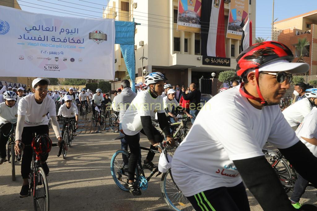 بدايه احتفاليه محافطة سوهاج بمكافحة الفساد كانت بطريقه جديده و ملفتة للنظر الا وهى انطلاق الدراجات ويقودها المقاتل اللواء طارق الفقى محافظ الاقليم ومعه نائبه سامى القاضى واللواء احمد الجارحى رئيس هيئه الرقابة الإدارية بسوهاج ود احمد عزيز رئيس جامعة سوهاج وذلك تزامنا مع الاحتفال باليوم العالمي لمكافحة الفساد