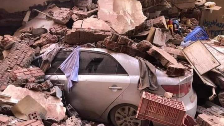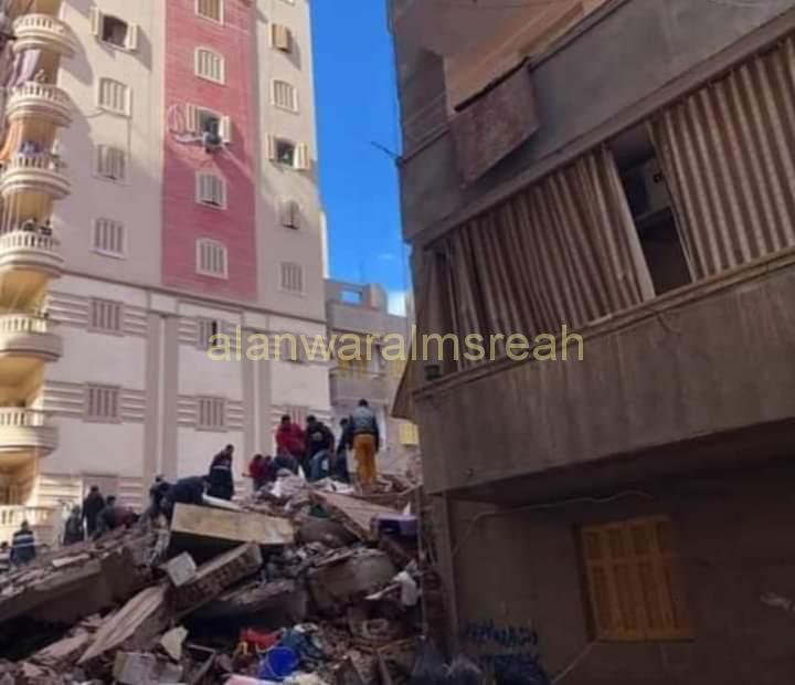 انهيار مفاجيء لمنزل 5 طوابق والبحث عن 10 تحت الأنقاض بالمحلة