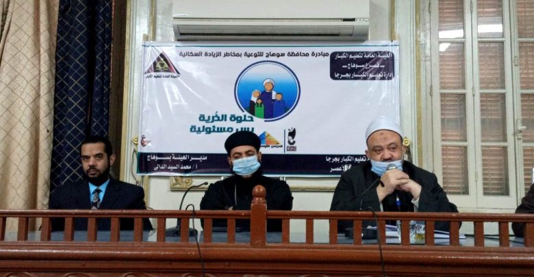 ومن جانبه أوضح محمد الدالي مدير عام هيئة محو الأمية وتعليم الكبار أنه تم تنفيذ ندوات التوعية بإدارات تعليم الكبار بمراكز ” جرجا، وطهطا، والمنشاة”، بمشاركة مدربين من هيئة تعليم الكبار، ورجال الدين الإسلامي والمسيحي، وأطباء متخصصين، مشيرا إلى أن الندوات استهدفت توعية المعلمات بفصول محو الأمية بخطورة الزيادة السكانية، وكيفية تضمين الرسائل السكانية في المحتوى التعليمي المقدم للدارسين بفصول محو الأمية .