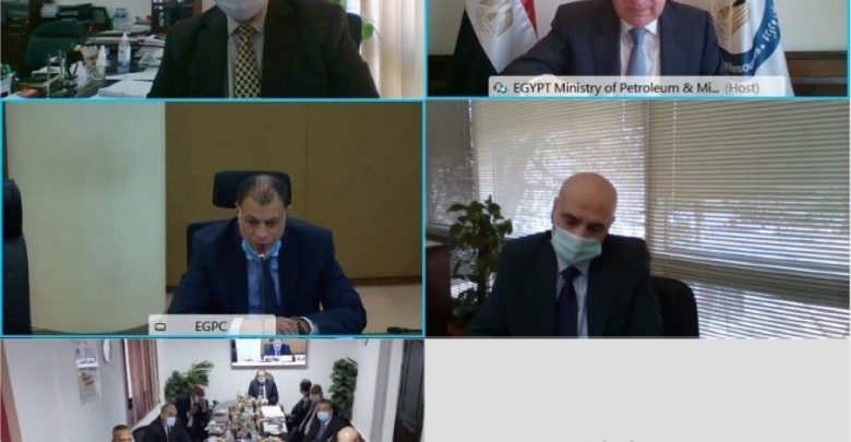 رأس المهندس طارق الملا وزير البترول والثروة المعدنية عبر الفيديوكونفرانس اعمال الجمعية العامة لشركة الخدمات البترولية للسلامة والبيئة ” بتروسيف ” لاعتماد نتائج اعمال عام 2020 .