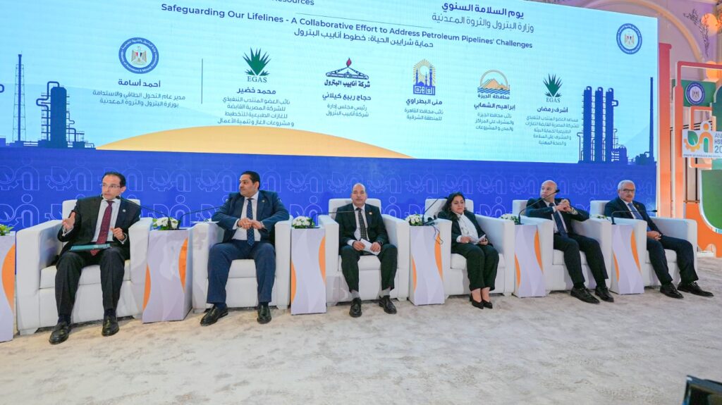 أما الجلسة الثالثة بعنوان ( حماية شرايين الحياة .. خطوط أنابيب البترول والغاز ) بمشاركة المهندسة منى البطراوي نائب محافظ القاهرة والدكتور ابراهيم الشهابي نائب محافظ الجيزة والمهندس محمد خضير نائب رئيس شركه ايجاس للتخطيط ومشروعات توصيل الغاز والدكتور اشرف رمضان مساعد رئيس شركه ايجاس للسلامة والبيئة والمهندس حجاج كيلاني رئيس شركه انابيب البترول وادارها المهندس احمد اسامة مدير عام التحول الطاقي والسلامة بوزارة البترول والثروة المعدنية.