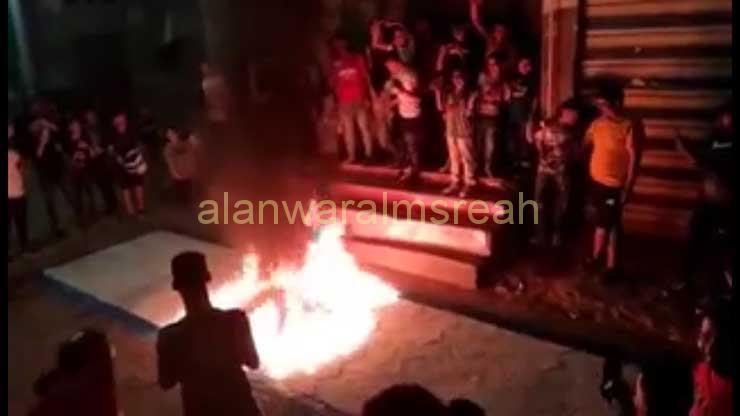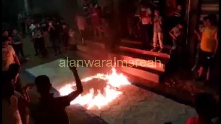 كان العشرات من الشباب تجمعوا داخل القرية للتنديد بجرائم الإحتلال، وأحضروا كمية من الدهانات والمواد القابلة للاشتعال ورسموا العلم الإسرائيلي وأحرقوه وسط هتافات منددة بجرائم الاحتلال.