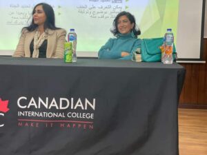 استضافت الجامعة الكندية بالتجمع الخامس أحد الفعاليات الخاصة ببرنامج “سيوة بتتكلم أخضر” تحت رعاية أ.د رانيا سقراط وكيل الكلية لشؤن البيئة وخدمة المجتمع وبحضور منى مجدلاني أمين عام الجامعة الفرنسية و كاميليا أحمد مسئول العمل الطلابي بالجامعة. وقد تضمنت الفاعلية ندوة تعريفية بمفاهيم العنف البطيء ضد البيئة وآثارها الإجتماعية والاقتصادية وورشة عمل تفاعلية.