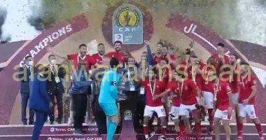 لحظة تسلم لاعبي الأهلي ميداليات السوبر الأفريقي ومنح الكأس للشناوى.. فيديو