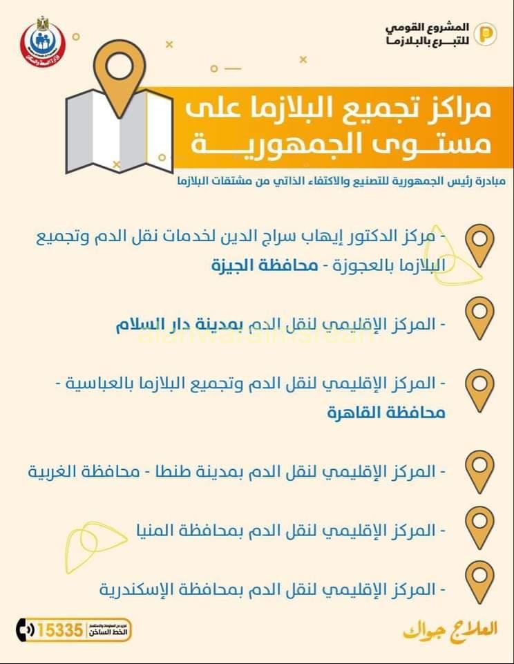 تعرف علي مراكز تجميع البلازما على مستوى الجمهورية