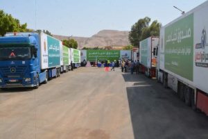 وتفقد محافظ سوهاج والسادة المرافقين القافلة، والتي تضم 32 تريلا كونتنر، و45 سيارة جامبو، وتشمل ” 64 ألف كرتونة مواد غذائية، و15 ألف قطعة ملابس، وأجهزة ومعدات طبية منها ” 70 ماكينة غسيل كلوي، و101 كرسي غسيل كلوي، و38 حضانة بمشتملاتها، وحضانة متنقلة بجهاز تنفس، وحضانة متنقلة، وعدد 28 جهاز العلاج بالضوء، و10 أجهزة إفاقة، و4 أجهزة قياس الصفراء، و14 جهاز ضغط المجرى الهوائي، و14 جهاز تنفس صناعي، و16 سرير رضيع، و44 ماكينة صخ السوائل، و38 ماكينة سحب سوائل .