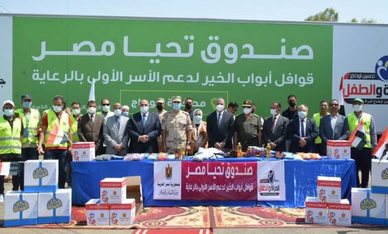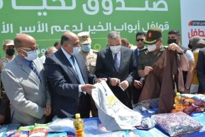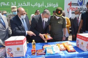 الفقى يستقبل قافلة ” أبواب الخير ” أكبر قافلة مساعدات إنسانية أطلقها الرئيس