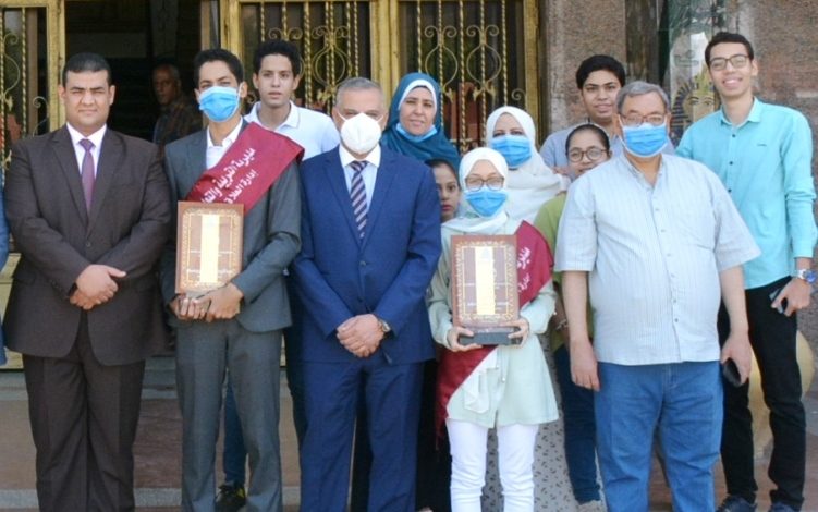 كرم اللواء طارق الفقي محافظ سوهاج، أوائل الثانوية العامة على مستوى الجمهورية من أبناء المحافظة، الطالبة ضحى رفاعي محمد علي الحاصلة على المركز الثاني مكرر على مستوى الجمهورية علمي علوم بمجموع 403 درجة، والطالب عبد الرحمن خالد يوسف الزهري الحاصل على المركز الثاني مكرر علمي علوم بمجموع 403 درجة، بحضور الدكتور عربي أبو زيد وكيل وزارة التربية والتعليم بالمحافظة، وأولياء أمور الطلاب.