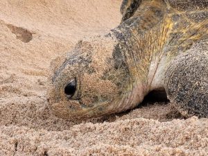 واشار الي ان السلاحف تبيض من ١٠٠ الي ١٢٠ بيضة موضح الي ان وزن السلحفاة يتروح من ١٩٠ الي ٢٠٠كم