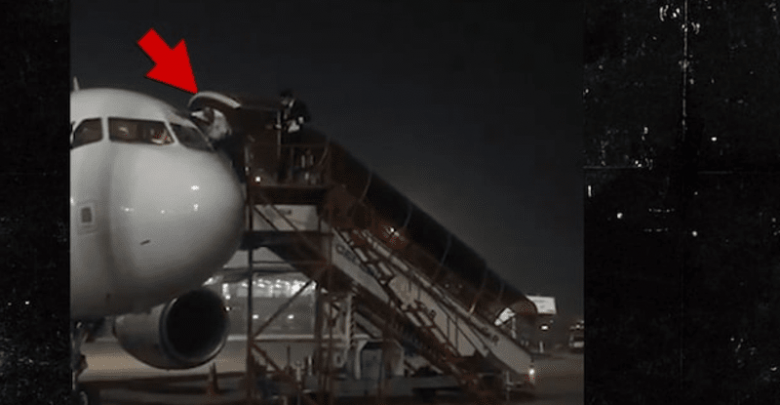 وبعد ذلك، ظهر الطيار وهو يتسلق إلى النافذة ويخرج منها على السلالم الموضوعة بجانب الطائرة، وفقا لتقرير موقع TMZ الذي أكد أن الفيديو التقط الجمعة الماضية، وأن إصابة ركاب بكورونا كانت مجرد شائعة