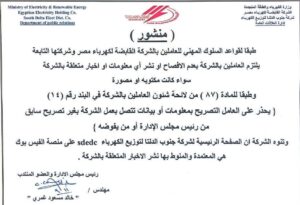 هذا القرار يهدف إلى تنظيم التواصل الداخلي والخارجي للشركة وضمان الالتزام باللوائح والقوانين المعمول بها في قطاع الكهرباء.