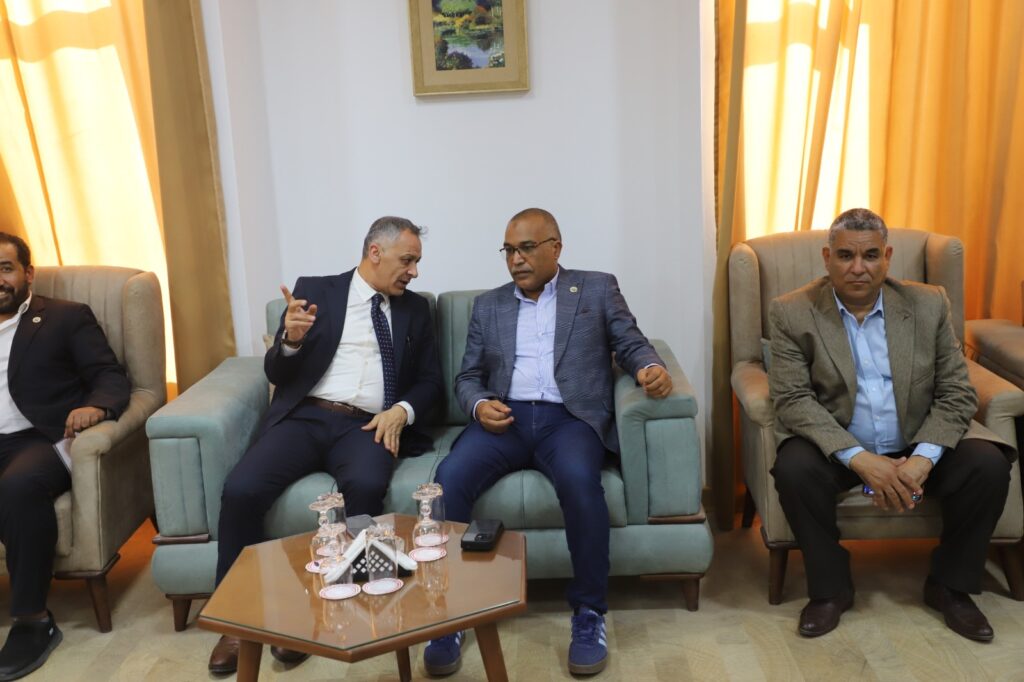 رافق رئيس النقابة خلال الزيارة كل من: صبري عبد العزيز نائب رئيس النقابة، المهندس أحمد نسيم نائب رئيس النقابة، هيثم زاد الدين رئيس المركز الإعلامي للنقابة، محمد صلاح أمين شباب النقابة، وأسامة القلماوي عضو المركز الإعلامي للنقابة