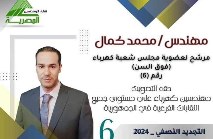 كل الدعم والتأييد للمهندس محمد كمال لعضوية النقابه بمقعد مجلس شعبة الكهرباء العامة