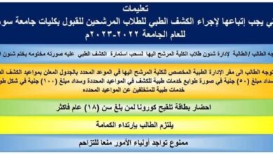 أعلن الدكتور مصطفي عبد الخالق رئيس جامعة سوهاج، أنه تحدد يوم الاثنين القادم الموافق ١٢ سبتمبر الجاري، لبدء توقيع الكشف…