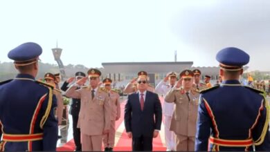 الرئيس عبدالفتاح السيسي يضع أكاليل الزهور على قبر الجندي المجهول والزعيمين أنور السادات وجمال عبدالناصر