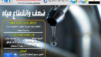 اليوم: انقطاع المياه بقرية شطورة بمركز طهطا بسوهاج من الحادية عشرة مساءً حتى الخامسة فجراً لإجراء اعمال الصيانة