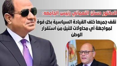 جامعة سوهاج تعرب عن إدانتها واستنكارها الشديد للاعتداءات الاسرائيلية تجاه الجمهورية الإيرانية الشقيقة والنعماني يؤكد نقف جميعا خلف القيادة السياسية بكل قوة، لمواجهة أي محاولات للنَيل من استقرار الوطن