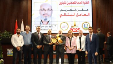 نقابة البترول تكرّم طارق عزت عبدالفتاح بشركة برج العرب في حفل العامل المثالي
