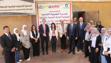 وزيرة التعاون الدولى ومحافظ أسوان ورئيس جهاز تنمية المشروعات يتفقدوا الأعمال الإبداعية للمتدربات بالجمعية التعاونية الإنتاجية النسائية للحرف اليدوية والتراثية بأبو الريش